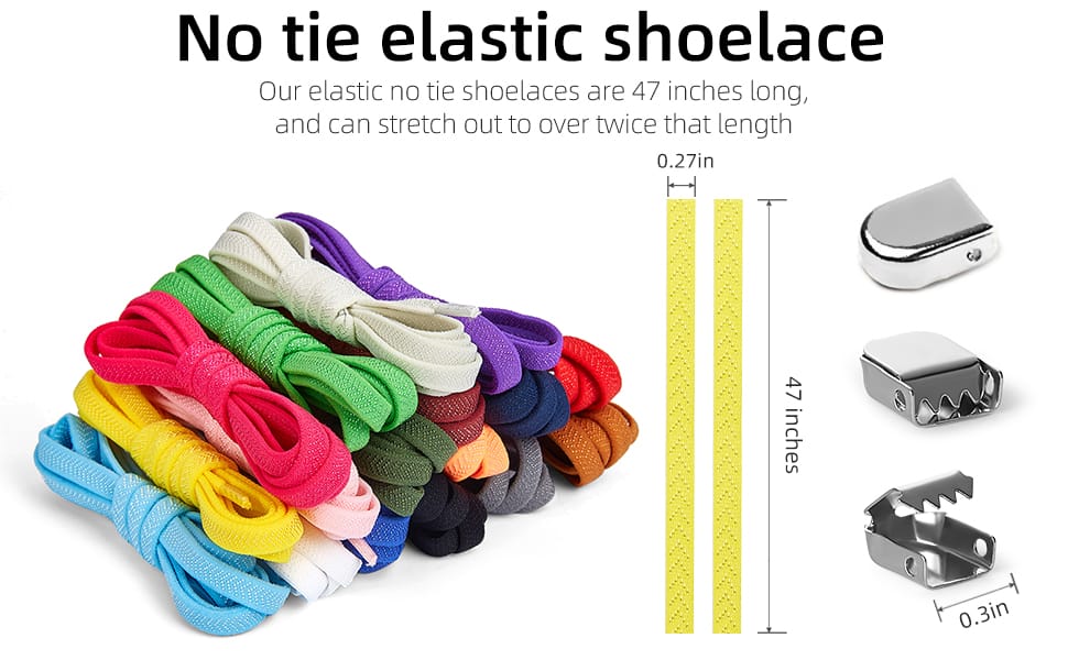 Available in 19 vibrant colors, our elastic shoelaces can transform the look of your sneakers and slip-on duty boots. They blend seamlessly with tennis shoes, hiking boots, and sandals. These shoelaces make perfect gifts for seniors, kids who struggle with tying shoes, or runners looking to speed up their triathlon transitions.