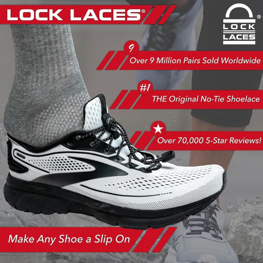 Lock Laces are the original no-tie shoelaces, with over 8 million pairs sold worldwide. This innovative lacing system turns any pair of lace-up tennis shoes into convenient slip-on sneakers.