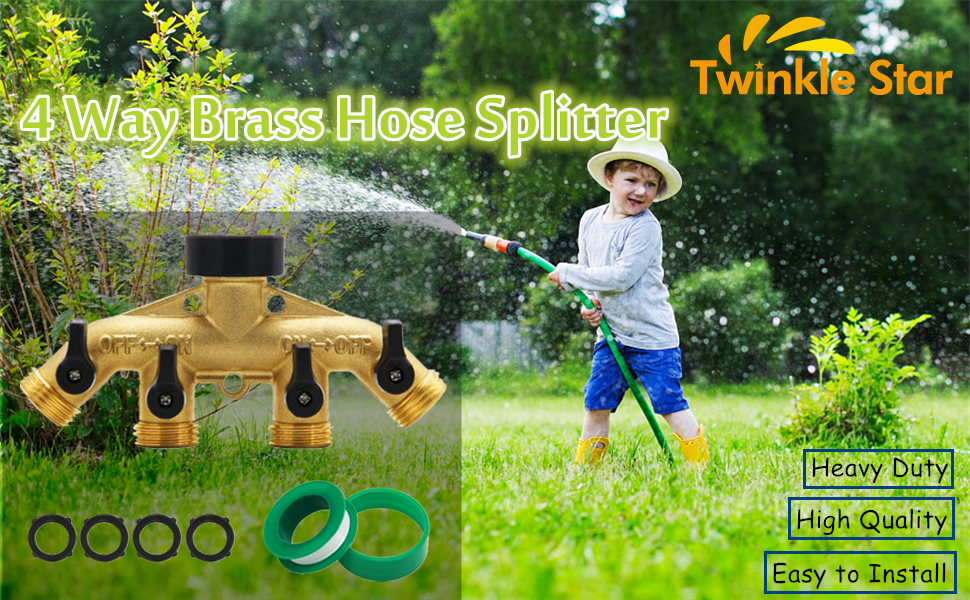 Twinkle Star 4 Way Heavy Duty Brass Garden Hose Splitter
