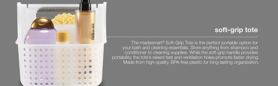 Madesmart 2-Compartment Soft Grip Shower Tote for Bathroom Organization