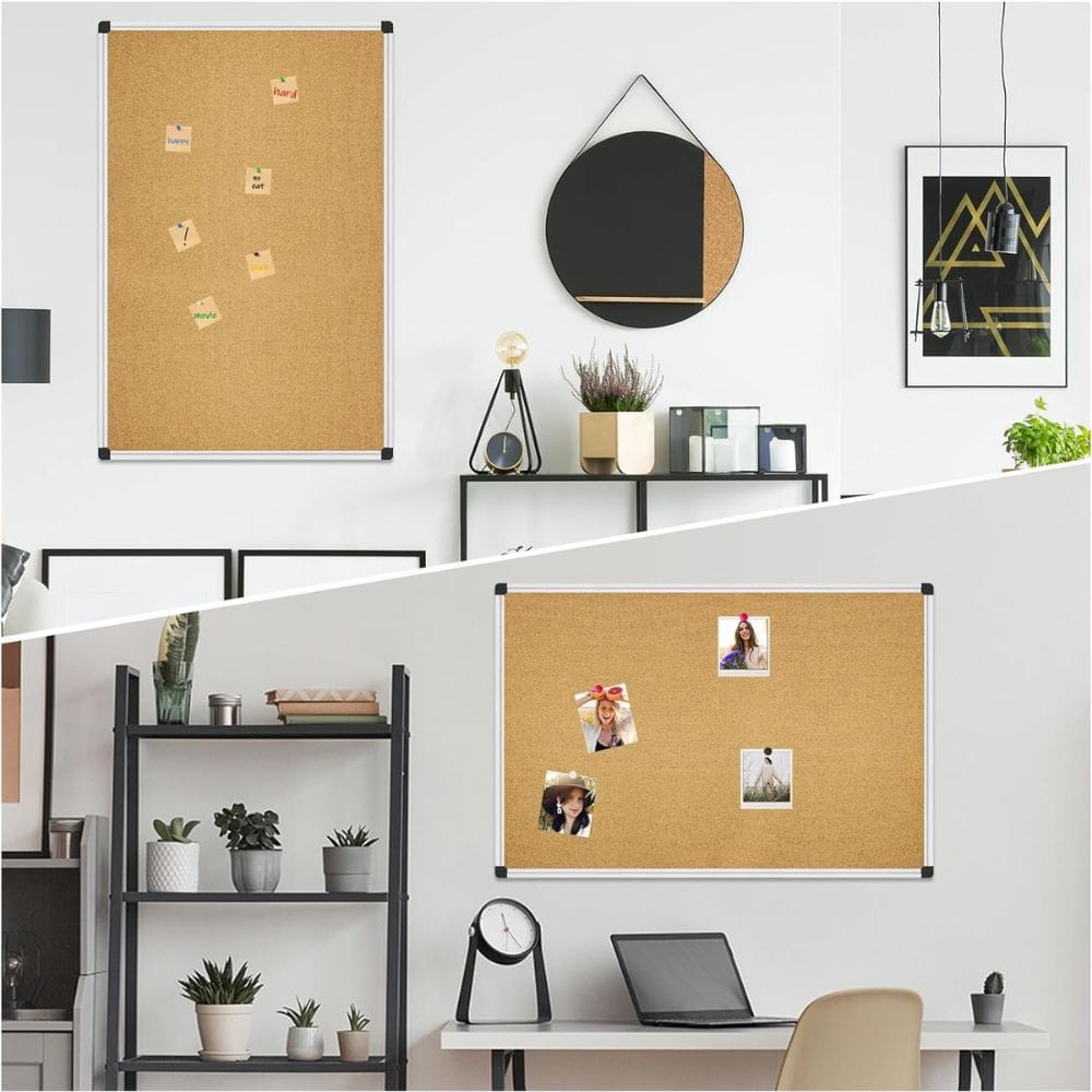 Constructed with a high-grade, sturdy aluminum frame and equipped with ABS plastic corners, our corkboard is designed with safety in mind, eliminating any sharp or pointed edges. Whether you're looking to add a functional display to your family's command center or need a reliable message board for your workspace, this corkboard is up to the task.