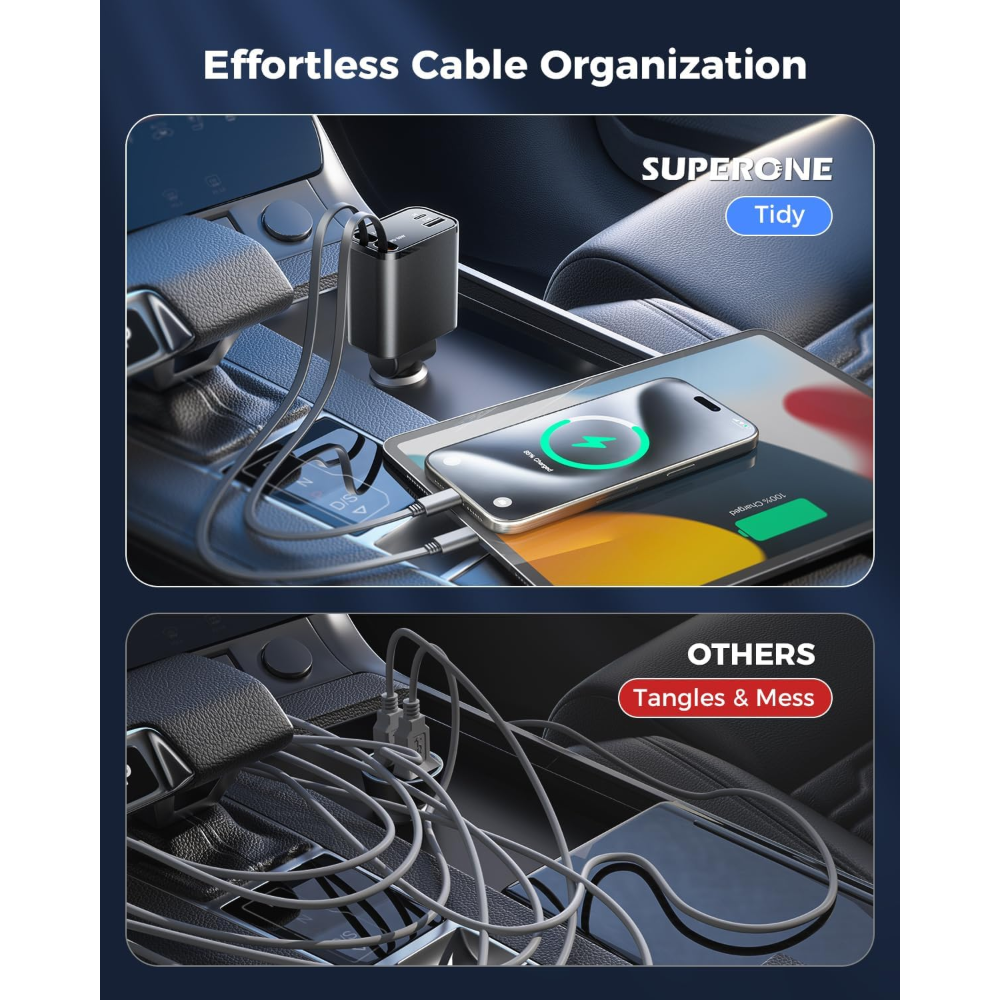 Upgrade your vehicle's charging capabilities with the LISEN Retractable Car Charger 4 in 1, and enjoy a seamless, clutter-free experience on the road.