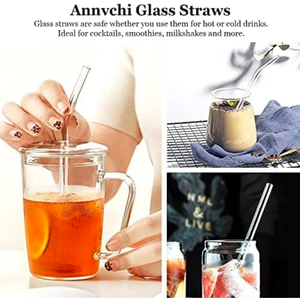 “I’m used to the thinner glass straws that come with the viral round glasses and was surprised when I received these thicker ones. No worries though, I know that means they will last longer. Also came with 2 cleaning sticks which is nice!” Amazon Review by Isabella