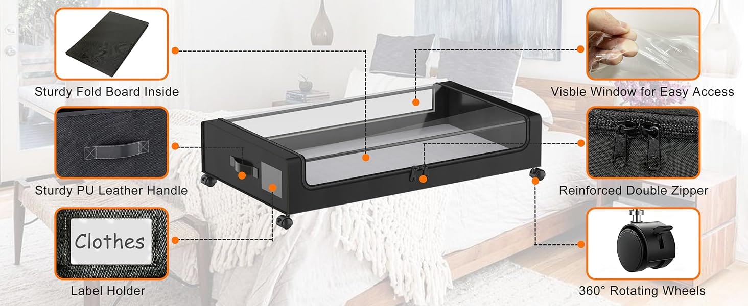 "I bought this container to maximize space in my small bedroom, and it’s a perfect storage solution for seasonal clothing, extra bedding, or anything you want to keep organized but out of sight. Highly recommend!" Amazon Review by MMJ