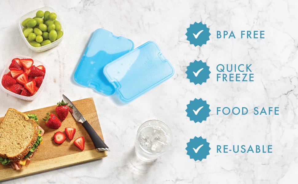 - Health and Safety: Prevent germs from the cafeteria, shared office refrigerator, or takeout containers by packing a lunch using these long-lasting ice packs.