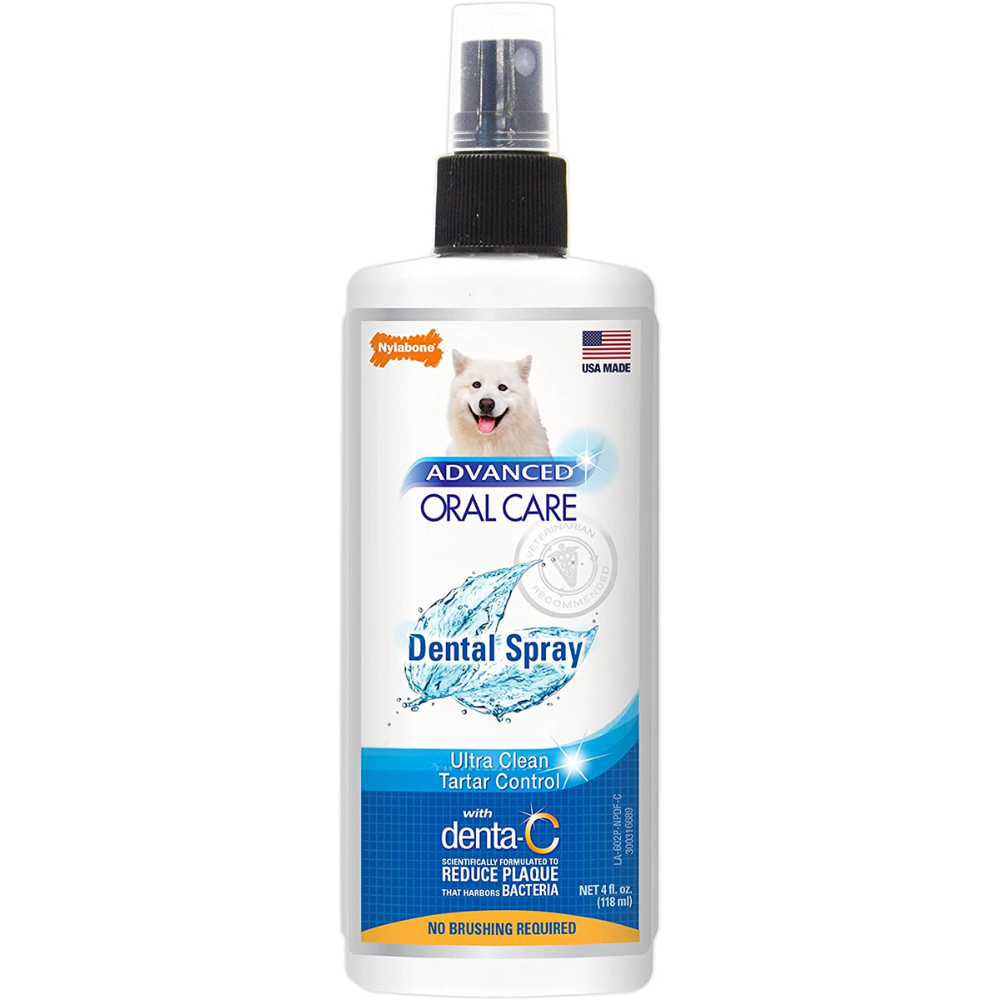 This 4-fluid-ounce spray bottle is packed with natural ingredients like green tea extract, which help improve oral health. Plus, it controls bad breath and reduces plaque and tartar buildup. It's easy to use, too - just spray directly onto your dog's teeth and gums 1 to 2 times per day. And it's sized just right for easy portability, so you can take it with you wherever you go. So why wait? Get your dog the dental care they deserve with Nylabone Advanced Oral Care Dental Spray.