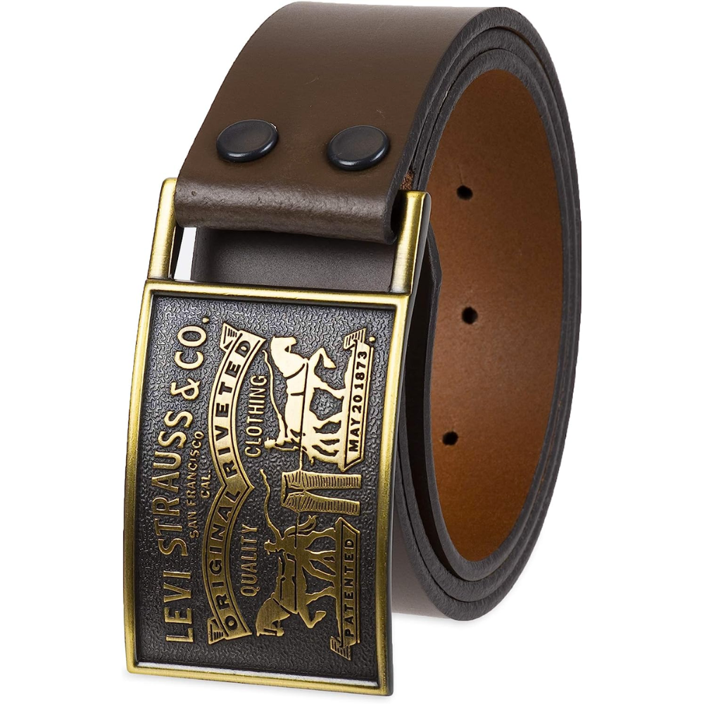 Get the perfect look and feel with Levi's Men's Jeans Belt! Featuring a removable snap logo buckle, giving you ultimate versatility and style. With a classic design and bronze finish, this belt is perfect for casual wear. The smooth black belt strap measures 1.5 inches to fit easily in your belt loops. Get ready to make a statement with Levi's Men's Jeans Belt!