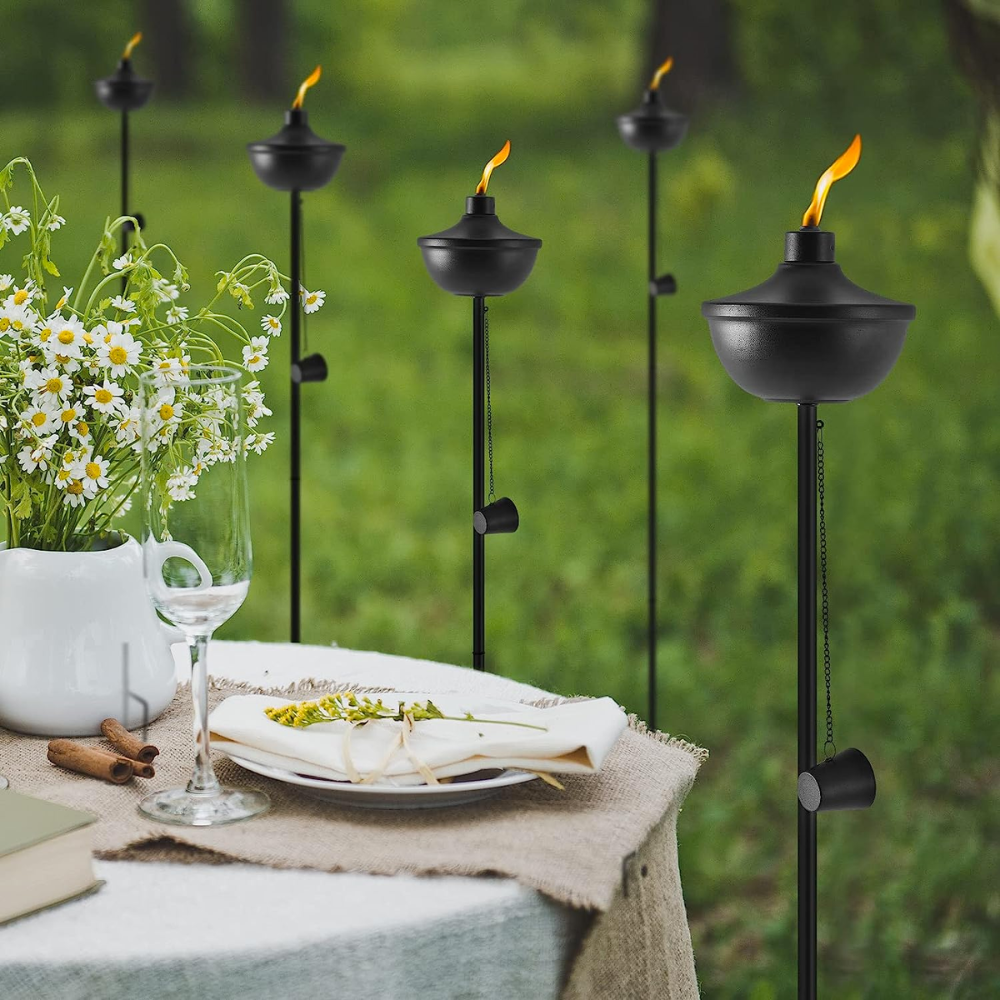 “I got these torches for my backyard; they look elegant, sturdy, and weather resistant. I love how the bottom part is so stable, and they stay in place even when windy.” Amazon Review by Kim