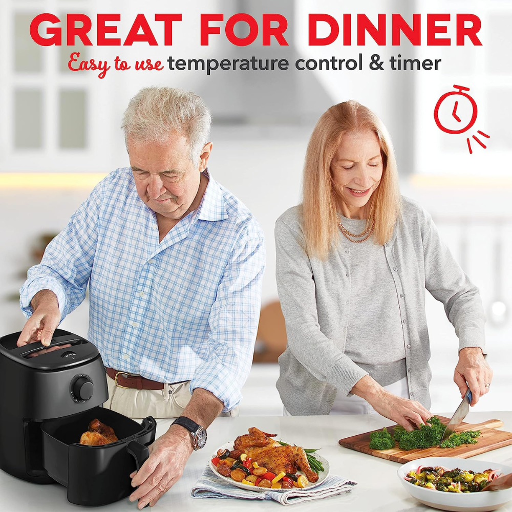 This is a great little air fryer. It’s easy to clean and cooks great. Perfect for cooking for just one or two people. I bought a small because I didn’t know if I would like one but it’s great. I might endeup getting a bigger one.” Amazon Review by sphillips1773
