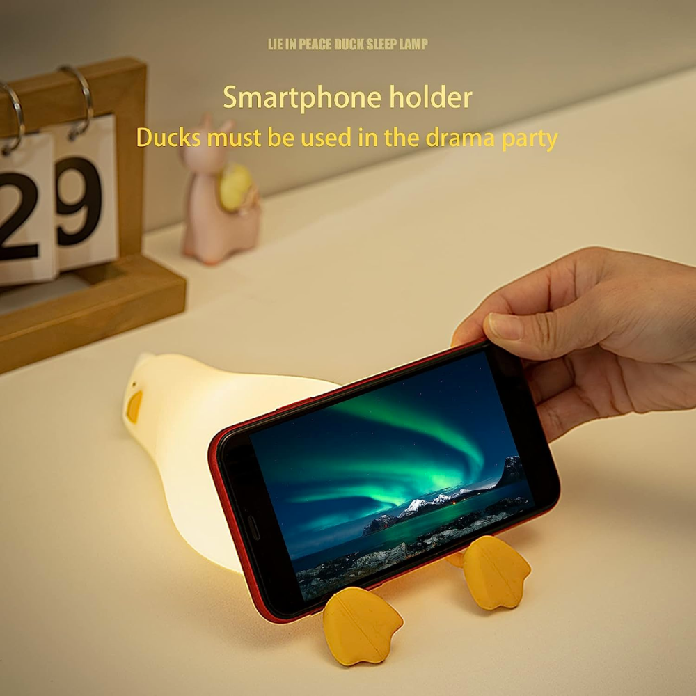 “This was an impulse purchase when I saw it featured on "My Modern Met" on Facebook. Shipped fast. Excellent customer service. The lamp itself is small, so easy to add a bit of fun to a side table or desk. It has 3 levels of brightness. Super soft and squishy. Whimiscal decor items like this remind us all to enjoy the little things. Like a duck who has seen things, and will hold your phone for you. Amazon Review by E Wgner