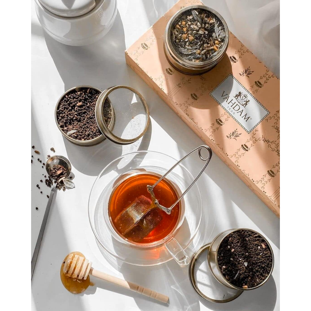 Delight the tea connoisseur in your loved one! VAHDAM Assorted Tea Gift offers unique flavor combinations that are sure to tantalize your tea lover’s senses. Enjoy the soothing Sweet Himalayan Detox Green Tea, delectable Saffron Masala Chai, and the savory Earl Grey Masala Chai - all perfectly packaged in exquisite gift boxes. Treat yourself or someone special to this luxurious tea experience!