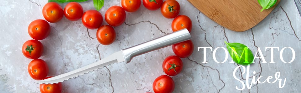Discover the ultimate kitchen tool for effortlessly slicing tomatoes, vegetables, fruits, and more. The world-renowned Rada Tomato Slicer is your go-to knife for precision cutting. Whether you're slicing lemons, onions, lettuce, or even hard-cooked eggs, this versatile slicer handles it all with ease.