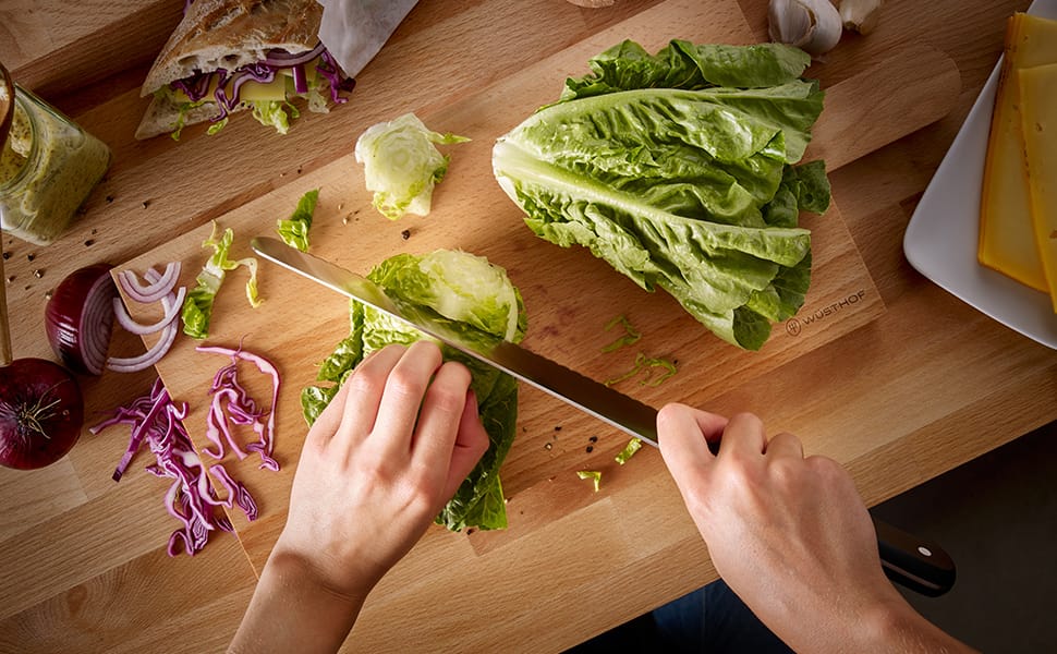 "I wanted to see if it was as good for cutting tomatoes and onions as it was reported. I keep all my knifes razor sharp and this is one sharp knife. My wife sliced her finger using it because it went through the tomato so quickly. It was great for slicing Vidalia onions. Even though I like a thin 6" Wusthof for onions, this will be my go to knife in the future." Amazon Review by Alpha L