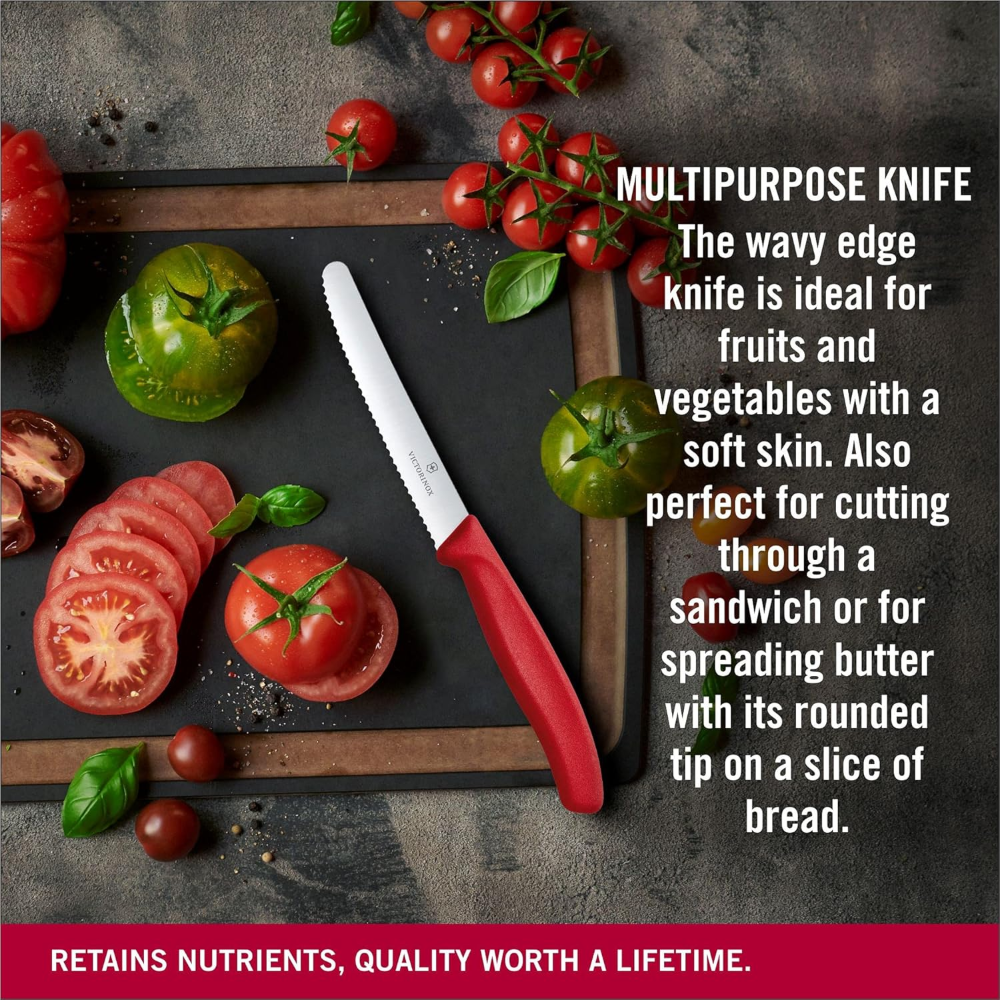 - Swiss Precision: Expertly crafted tomato and table knife featuring a wavy edge for enhanced cutting performance.