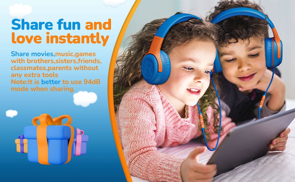 Featuring built-in 40mm drivers, iClever headphones deliver a full, balanced stereo sound, ideal for gaming and music. The share port allows kids to connect another headphone directly, enabling easy audio sharing with friends or family without the need for splitters or special cables.